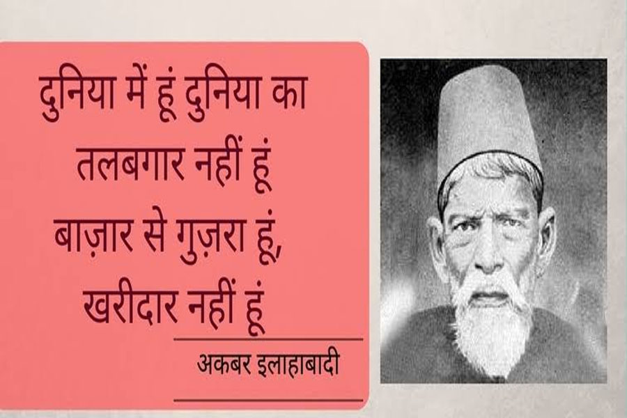 हास्य-व्यंग्य के शायर अकबर इलाहाबादी को शायरी की दुनिया का ‘बेताज़ बादशाह’ कहा जाता है। वे एक ऐसा शायर थे, जिसके अल्फाजों में इश्क़ की रूमानी खुशबू थी। वहीं, राजनीति पर सीधे तंज कसने में भी वे पीछे नहीं थे। समाज में व्याप्त रूढ़िवादिता और धार्मिक ढोंग के प्रति विद्रोहपन उनके स्वभाव का हिस्सा था। इलाहाबादी का जन्म 16 नवंबर, 1846 को उत्तर प्रदेश में इलाहाबाद (अब प्रयागराज) के बारां गांव में हुआ था। मह​ज़ मैट्रिक तक पढ़े-लिखे इलाहाबादी ने शायरी की दुनिया में खूब नाम कमाया। अज़ीम शायर अकबर इलाहाबादी की आज 177वीं बर्थ एनिवर्सरी के अवसर पर पढ़िए उनकी कुछ बेहतरीन शायरियां…