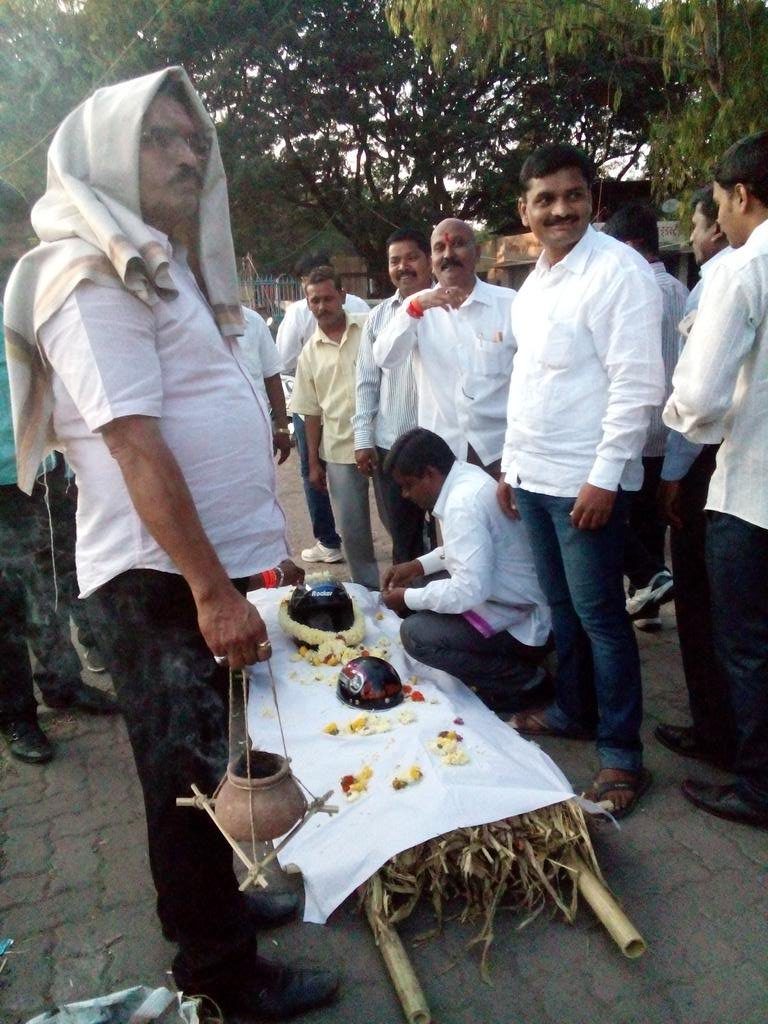 पुणे में एक संगठन ने हैलमेट का अंतिम संस्कार करते हुए कानून का विरोध किया है। जी हां हैलमेट सख्ती विरोधी समिति नाम के इस संगठन ने हैलमेट पहनने पर ट्रैफिक पुलिस द्वारा की गई अनिवार्यता के खिलाफ हैलमेट की अंत्योष्टि करके अनोखा विरोध जताया। इस अनोखे विरोध प्रदर्शन की अगुवाई शिवसेना नेता महादेव बबाई ने की और पुलिस को हैलमेट अनिवार्य करने वाले कानून को वापस लेने को कहा। सबसे मजेदार बात तो ये रही कि 10 दिन पहले हैलमेट का अंतिम संस्कार करने के बाद संगठन ने उसकी दसवीं एक रैली निकालकर मनाई जहां काफी संख्या में हैलमेट विरोधी लोग हाथ में बैनर लिए सड़क पर निकले।