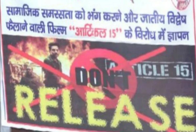 ऐसे में इन्हीं में से किसी एक कलंक को फिल्मी पर्दे पर लेकर आ रहे हैं अभिनेता आयुष्मान खुराना। फिल्म का नाम है ‘आर्टिकल 15’। ‘मुल्क’ बनाने वाले अनुभव सिन्हा डायरेक्ट कर रहे हैं। हमारे महान भारतीय संविधान में ‘आर्टिकल 15’ लिखा है जो सभी की बराबरी की बात कहता है। इसका हम विस्तार से जिक्र आगे करेंगे। फिल्म 28 जून को रिलीज होगी, जिससे पहले कुछ ब्राह्मण संगठनों (अखिल भारतीय ब्रह्मण एकता परिषद) का कहना है कि फिल्म में ब्राह्मणों को विलेन के रूप में दिखाया गया है, वो ही कुछ-कुछ पद्मावत फिल्म जैसा माहौल है। फिल्म की रिलीज रोकने की मांग जोरों पर है।