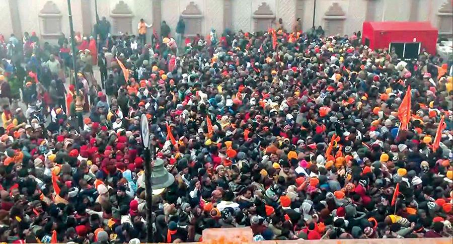 प्राण प्रतिष्ठा के बाद मंगलवार को जब मंदिर के पट खुले तो परिसर के बाहर का दृश्य प्रशासन को चौंकाने वाला था। लाखों की संख्या में श्रद्धालु रामलला की चौखट पर खड़े थे। भक्त पैदल एवं गांव गलियों से होकर लोग रामनगरी पहुंच रहे थे। भीड़ नियंत्रण के लिए सीएम योगी ने खुद रणनीति बनाई । प्रमुख सचिव गृह संजय प्रसाद एवं पुलिस महानिदेशक कानून-व्यवस्था प्रशांत कुमार यहां पहले से ही कैंप कर रहे हैं। दोनों वरिष्ठ अधिकारी स्वयं गर्भगृह में दर्शन व्यवस्था की कमान संभाले हैं।