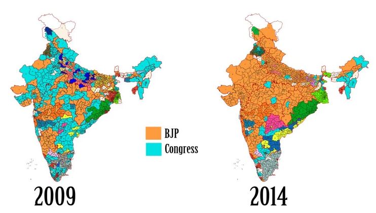 10 साल पहले, कांग्रेस सत्ता में थी तो देश के मानचित्र का नक्शा कुछ ऐसा था आज जब 10 साल बाद, बीजेपी खड़ी है तो कुछ ऐसा दिखाई देता है। अब आने वाला लोकसभा चुनाव बताएगा कि आगे राजनीतिक मानचित्र किस रंग में होगा!