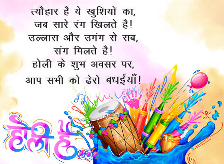 होली का यह त्योहार एक दिन और एक रात तक चलता है, जो फाल्गुन के महीने में पूर्णिमा की शाम से शुरू होता है। इस शाम को होलिका दहन के रूप में जाना जाता है और अगले दिन को धुलंडी कहा जाता है, जिसे देश के विभिन्न हिस्सों में अलग-अलग नामों से जाना जाता है। रंगों के इस त्योहार के मौके पर आप भी अपने दोस्तों, करीबियों व रिश्तेदारों को इन खूबसूरत पिक्चर मैसेज के साथ दें होली की ढेर सारी शुभकामनाएँ…