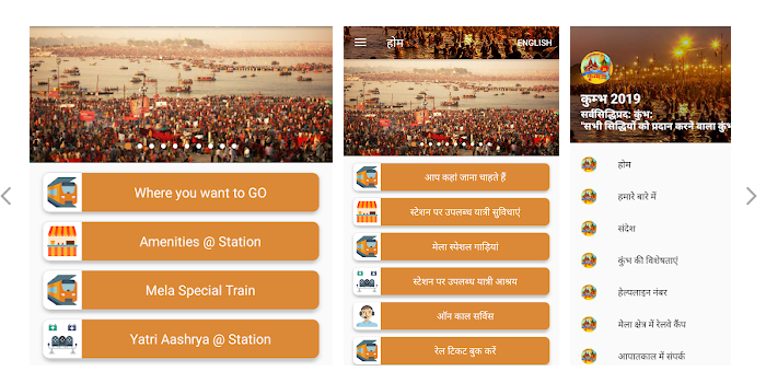 प्रयागराज में आयोजित होने जा रहे कुंभ मेले में पहुंचने वाले रेल यात्रियों की सुविधा के लिए अखिल भारतीय स्तर पर यूटीएस ऐप लॉन्च किया गया है। कुंभ मेले में आने वाले लोगों को इस ऐप की मदद से पेपरलेस टिकटिंग की सुविधा मिलेगी। इसके साथ ही इस ऐप के जरिए यात्रियों को स्टेशन पर उपलब्ध सुविधाएं जैसे पार्किंग, रिफ्रेशमेंट रूम, वेटिंग रूप, एटीएम, खाद्य प्लाजा, ट्रेन पुछताछ से जुड़ी तमाम जानकारियां देगा। ‘रेल कुंभ सेवा’ मेला ऐप-2019 के नाम से इस मोबाइल ऐप को विकसित किया गया है।