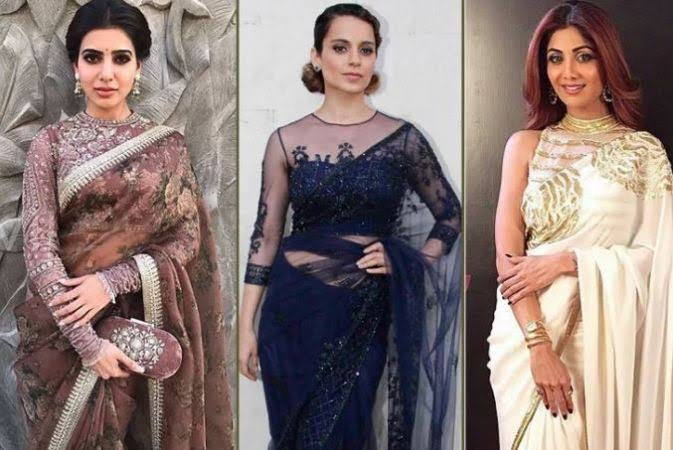 साड़ी के साथ इन दिनों शीयर ब्लाउज जबरदस्त ट्रेंड में हैं। इसके साथ आप मनचाही स्लीव्स के साथ कैरी कर सकते हैं। इस तरह के डिजाइनिंग ब्लाउज़ के साथ प्लेन साड़ी पहनी जा सकती है जो बेहद क्लासिक लुक देगी। शीयर ब्लाउज को बोट नेक खूबसूरती में चार चांद लगाने का काम करेगा।