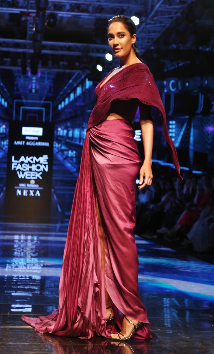 अभिनेत्री ईशा गुप्ता लैक्मे फैशन वीक में डिजाइनर एसएस के आउटफिट में नजर आईं।