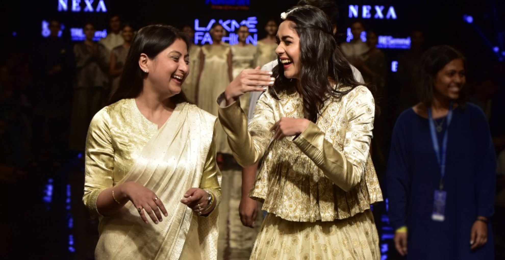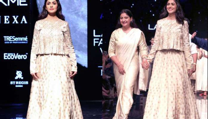 अभिनेत्री मृणाल ठाकुर पहली बार रैंप वॉक करती नजर आईं। वे डिजाइनर अल्का शर्मा की शो स्टॉपर बनी।