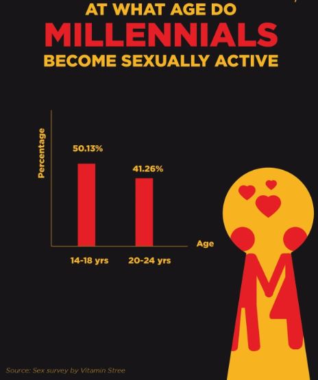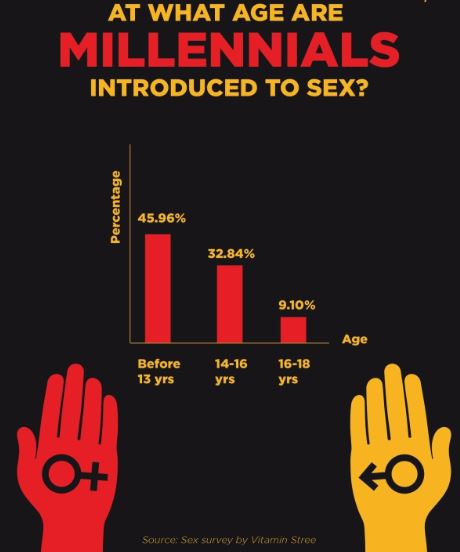 हाल ही वीडियो कंटेंट प्लेटफॉर्म “विटामिन स्त्री” द्वारा किए गए एक सेक्स सर्वे में यह बात सामने आई है कि हालांकि भारत में 46 प्रतिशत शहरी जो साल 1981 से 1996 के बीच जन्में हैं वे 13 साल की उम्र से पहले सेक्स के बारे में सीख जाते हैं लेकिन अधिकतर लोगों यह भी माना कि उन्होंने कभी ना कभी असुरक्षित यौन संबंध रखे थे।