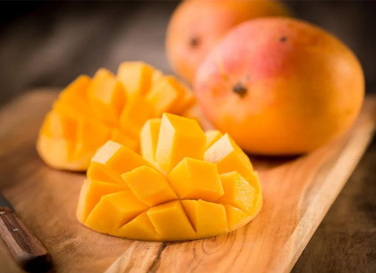 आम खाकर रूखे और सूखे बालों से छुटकारा पाया जा सकता है। यह पीला दिखने वाला फल विटामिन ए से भरपूर होता है जो आपके बालों में नमी को प्राकृतिक रूप से बढ़ाने में सक्षम होता है। आम में एंटीऑक्सीडेंट आपके बालों को सीधा और घना करने में मदद करते हैं।