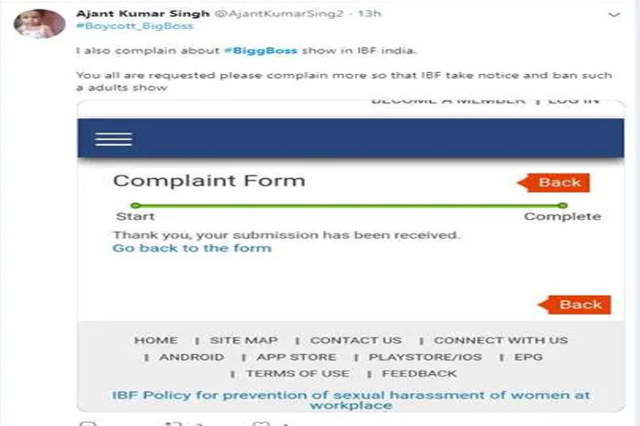 लोगों के बीच इस शो को लेकर गुस्सा इस हद तक है कि सोशल मीडिया पर बिग बॉस-13 को बायकाट करने की मांग कर रहे हैं। एक यूजर ने तो शो के कंटेंट को लेकर इंडियन ब्रॉडकास्टिंग फाउंडेशन(IBF) इंडिया को शिकायत तक कर दी। अब इसे लेकर सोशल मीडिया पर मिम्स भी बन रहे हैं। जो जबरदस्त वायरल हो रहे हैं।