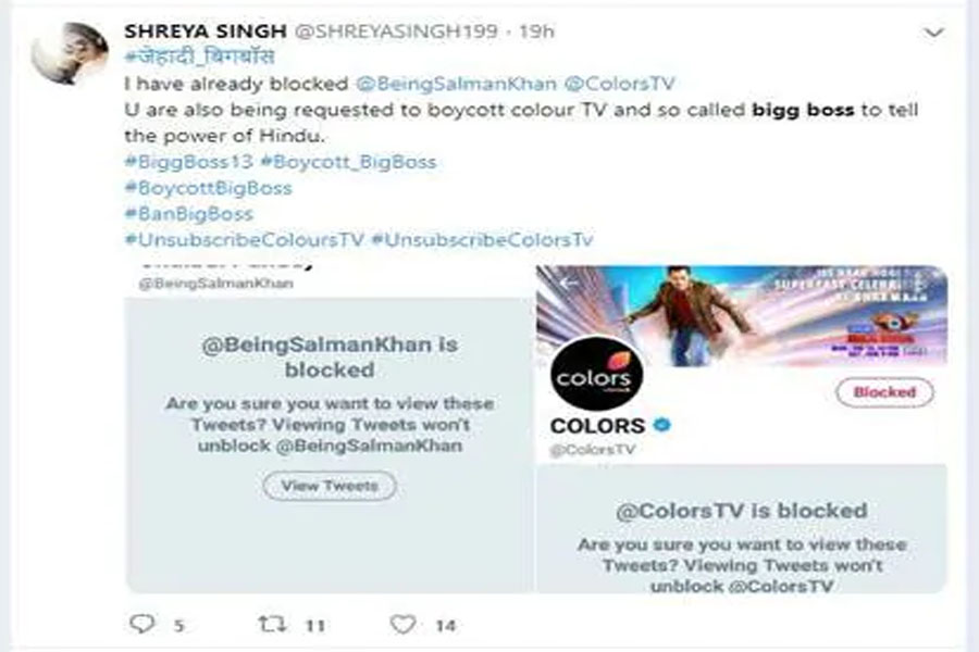 टीवी का सबसे चर्चित विवादित रियलिटी शो बिग बॉस सोशल मीडिया पर टॉकिंग पॉइंट बना हुआ है। बिग बॉस-13 को शुरू हुए अभी एक हफ्ता भी नहीं हुआ कि यह शो अपने कंटेंट को लेकर लोगों के निशाने पर बना हुआ है। सलमान खान के इस शो को लेकर लोगो का गुस्सा इस हद तक जा पहुंचा कि लोग इस शो को बंद करने की मांग कर रहे है। दरअसल शो के अभी तक कुछ ही एपिसोड टेलिकास्ट हुए हैं। लोगों शो पर लव-जिहाद और अश्लीलता फैलाने का आरोप लगा रहे हैं। सोशल मीडिया पर बिग बॉस-13 का जमकर विरोध किया जा रहा है।