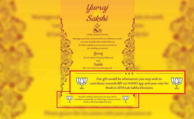 एक ताजा उदाहरण है देश के तेलंगाना राज्य के हैदराबाद में रहने वाले 27 वर्षीय किशन राव ने अपनी शादी के कार्ड में अपने दोस्तों और रिश्तेदारों से अनोखा अनुरोध किया है। उन्होंने कहा है कि शादी में कोई तोहफा न लेकर आएं, लेकिन आने वाले लोकसभा चुनाव में प्रधानमंत्री नरेंद्र मोदी को वोट देने का वादा करें।