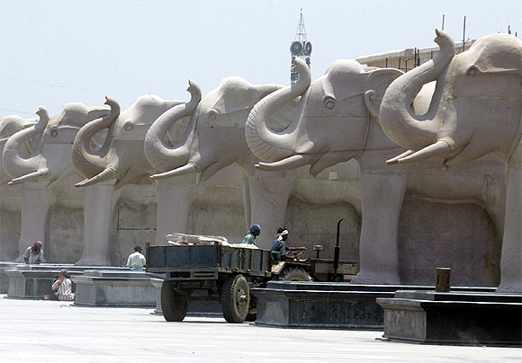 मायावती सरकार ने लखनऊ, नोएडा और राज्य के कुछ अन्य स्थानों पर 2,600 करोड़ रुपये की लागत से स्मारक, प्रतिमाएं और पार्क बनाए थे।